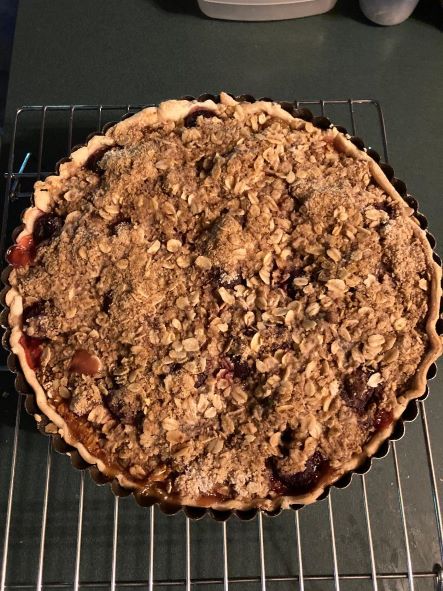 Next up was cherry season and this one I’m pretty proud of because it was a short season for cherries due to the rain. I got out to Hick’s Orchards for a few quarts of their sour or pie cherries. That weekend, I went out to Champlain Orchards with my husband and picked many quarts of their cherries. Black gold, balaton, and gold cherries filled our box. Some of those cherries are baked into the delicious looking tart above. Then came peach season and another drive to Champlain Orchards in Shoreham VT with a friend. Picking with friends is fun and I usually pick more because you’re talking and picking and next thing you know that bowl or bag is full to the brim! It was early in the season the first time I picked so I talked my husband into another drive to Champlain Orchards. I bribed him with lunch at West Coast taco truck in Benson Vt! And many more quarts of freshly picked summer fruit went in the freezer. I pick a lot of peaches because they are versatile, relatively easy to freeze and I love them. I often make a peach smoothie in the morning and my new favorite is peaches, ground flax seed, soy milk and 2 tbls elderberry syrup. YUM!